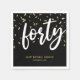 Des serviettes modernes de fête du 40e anniversaire avec un arrière - plan noir élégant, des confettis d'or, le titre "quarante" en caractères blancs gras, le dicton "anniversaire heureux", leur nom, et la date de la célébration.