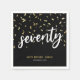 Des serviettes modernes de fête du 70e anniversaire avec un arrière - plan noir élégant, des confettis d'or, le titre "soixante-dix" en caractères blancs gras, le dicton "anniversaire heureux", leur nom, et la date de la célébration.