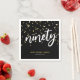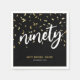 Des serviettes modernes de fête du 90e anniversaire avec un arrière - plan noir élégant, des confettis d'or, le titre "quatre-vingt-dix" en caractères blancs gras, le dicton "anniversaire heureux", leur nom, et la date de la célébration.