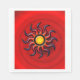 Un soleil stylisé audacieux et coloré sur un dégradé rouge arrière - plan dans un style d'art du sud-ouest. Associez ces serviettes à des plaques de papier de la même conception ou d'une conception similaire.