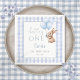 These charming 1st birthday party paper napkins feature a cute bunny holding balloons and a blue gingham background. Designed by Thisisnotme©