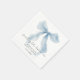 Elegant paper napkins for her bridal shower featuring a vintage blue bow watercolor, "something blue before I do" in a chic calligraphy script, and the bride's name and the shower date in classic serif typography.