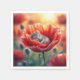 Une minuscule souris est nichée paisiblement à l'intérieur des pétales vibrants d'une fleur de pavot rouge, lézardée dans un jardin éclairé par le soleil