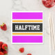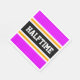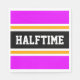 Cette conception sportive et sportive présente un texte HALFTIME audacieux à l'intérieur d'une large bande noire centre surlignée avec des rayures blanches et jaunes de course contre des rayures extérieures tropicales roses. Le texte peut être personnalisé.