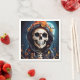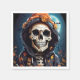 Mouchoirs en papier avec une illustration d'un squelette portant une veste à capuche avec un chapeau de sorcière orange sur le dessus. Une lune brillante en arrière-plan avec une chauve-souris volant à proximité. Création amusante d'automne Halloween.