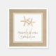 Cette simple serviette en papier de mariage de plage est ornée d'un arrière - plan de style burlap bordé de votre couleur mariage. Le point central de la serviette est une paire d'élégants coquillages d'étoiles de mer. Couleurs personnalisées disponibles sur demande.