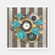 Serviette En Papier Steampunk Clock and Turquoise Roses on Striped