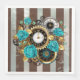 Serviette En Papier Steampunk Clock and Turquoise Roses on Striped