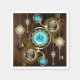 Turquoise lenses with antique watch with brass gears and golden keys on rusty, brown background. Steampunk style.