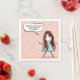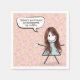 Jolie figurine en bâton avec une tasse de café blanc, cheveux, collier de perle, et citation sur arrière - plan rose floral. Le texte est modifiable.