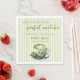 Serviettes de Fête de Mariage Thème Thé Matcha avec Rayures Vert Clair Minimalistes - Elle a Trouvé Ses Serviettes de Fête de Mariage Personnalisées - Élevez la décoration de votre fête de mariage avec ces serviettes de fête de mariage personnalisées. Ces serviettes de fête de mariage sur le thème du thé matcha sont parfaites pour la mariée qui aime le matcha, qui aime le thé et tout ce qui concerne la santé et le bien-être. Ce design minimaliste présente une illustration aquarelle d'une riche tasse de thé matcha mousseux avec du lait crémeux sur une soucoupe sur un fond vert sauge rayé de couleur menthe. La police de caractères manuscrite apporte une esthétique amusante et décontractée mais élégante. Parfait pour les fêtes de thé de mariage printanières, estivales et même automnales ou les soirées de mariage intimes