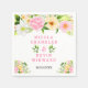 This beautiful and elegant wedding napkin features watercolor pink, yellow and white flowers with foliage. The text combines handwritten script and serif fonts for a stylish and modern look. This is perfect for a spring or summer rustic wedding.