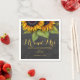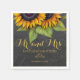 Script de typographie or rustique M. et Mme mariage serviettes en papier personnalisées avec un beau bouquet de tournesol sur arrière - plan de tableau noir gris foncé. Idéal pour votre nuit été ou automne | élégant pays rustique | jardin de plein air mariages à thème, malheur renouvellement ou anniversaires.