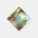 A picturesque terrace scene, adorned with vibrant potted plants, overlooks a serene blue ocean under a clear sky