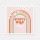 Serviettes de fête d'un premier anniversaire d'inspiration rétro super avec arc-en-ciel hippie, marguerites et polices et couleurs boho.