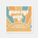 Super One Retro a inspiré des serviettes de fête de premier anniversaire avec des polices et des couleurs de style années 70.