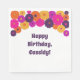 Ajoutez une touche de puissance florale à toute fête avec des serviettes personnalisées. Ces serviettes ont des graphismes marguerriers de style rétro dans les tons violet, rose, orange et jaune avec votre message personnalisé ci-dessous en coordonnant le lettrage violet.