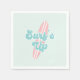 SURF ! Plage Surfing serviettes de fête d'anniversaire avec plateau de surf turquoise et rose.