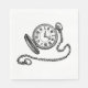 Une montre de poche vintage avec des chiffres romains et une chaîne. Ce design semble vraiment efficace sur ces serviettes en papier