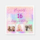 Serviette En Papier Sweet 16 rose holographique nom photo