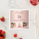 Pour une Soirée 16, 16e anniversaire. Un collage de 3 de vos photos d'elle-même, d'amis, de famille, d'intérêts ou d'animaux de compagnie. Une couleur arrière - plan blanche, féminine, rose, dégradé rose. Personnalisez et ajoutez son nom et son âge de 16 ans. Le texte : joyeux anniversaire est écrit avec un script de style à la main tendance avec des swashes. Texte de couleur or rose foncé.