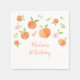 Ces serviettes d'anniversaire mignonnes présentent des pêches peintes à la main, des fleurs et de la verdure.