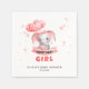 Adorable invitation baby shower avec un petit éléphant mignon tenant des ballons roses en forme de coeur, entouré d'étoiles délicates. La douce aquarelle rose et gris pastel crée une atmosphère douce et rêveuse, parfaite pour fêter l'arrivée d'un petit. Une belle bannière en ruban rose en bas offre de l’espace pour la personnalisation, ce qui en fait un endroit idéal pour la douche d’une petite fille.