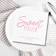 Serviettes en Sweet sixteen rose modernes. Le texte sur les serviettes peut être personnalisé, ce qui en fait un parfait ajustement pour une fête de 16ème anniversaire de filles. La fonctionnalité personnalisable permet d'ajouter des noms, des dates, des messages spéciaux ou toute autre information pertinente pour rendre l'événement plus spécial. Éléments correspondants disponibles. Veuillez utiliser le bouton Message me ci-dessous pour obtenir de l'aide sur la personnalisation et les demandes spéciales.
