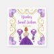 Cette serviette en sweet sixteen est ornée d'un cadre doré élégant, d'une belle princesse aux cheveux rouges et d'une robe violette, de fleurs et d'un ballon. C'est parfait pour une fête d'anniversaire en sweet sixteen.