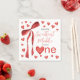 Complete your party tablescape with these elegant sweetheart watercolor red bow napkins. Perfect for serving cake at a first birthday or heart-themed celebration. The delicate bow and heart design adds a sophisticated touch to your event decor.