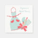 Une cuisine amusante serviette en papier de douche napperon avec tablier à pois bleu et blanc et ustensiles de cuisine attachés avec un arc rose. Graphiques ©http://myclipartstore.com