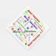 Papier de Noël multicolore de taille standard, serviette de déjeuner avec pattes de chien ; rouge, vert, bleu et or sur blanc.