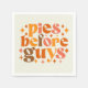 Ce design amusant et décalé à thème de chute comprend l'expression ludique "Pies avant les gars" dans une police audacieuse et d'inspiration rétro. Le texte est disposé dans une mise en page compacte et empilée avec chaque mot dans un style de police différent, créant une composition dynamique et attrayante. La palette de couleurs comprend des teintes automnales chaudes comme des oranges profondes, des marrons riches et des jaunes dorés, capturant parfaitement les ambiances douillettes de la saison.