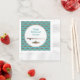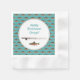 Serviettes en papier pour fête de retraite de pêche avec texte. Des images de truites et de cannes à pêche décorent les serviettes qui existent en plusieurs tailles et styles. Personnalisez avec de grandes lettres en haut disant "Joyeuse retraite (nom)". Une image de canne à pêche et une image de truite sont imprimées sous le texte. La bordure est un motif de truites tachetées nageant sur un fond de couleur turquoise. Nous avons des assiettes en papier assorties.