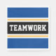 Ce design sportif et sportif présente un texte TEAMWORK audacieux à l'intérieur d'une large bande noire surlignée avec deux bandes blanches contre des bandes extérieures bleues profondes. Le texte de cette conception peut être personnalisé.