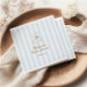 “We can bearly wait” Celebrate the mom-to-be with these cute hand drawn baby shower napkins featuring a line art drawing of a teddy bear and a soft blue vertical striped background.