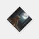 A teddy bear gazes out the window at the full moon, with Santa's sleigh silhouetted against the night sky, as the softly lit room creates a cozy and magical atmosphere