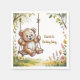 Parfait pour la fête d’anniversaire d’un bébé. Corde balançant avec un mignon ours en Teddy moelleux dans la peinture aquarelle avec des arbres et des fleurs sauvages.