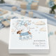 Adorable 'A Teenie Weenie Baby is on His Way' paper napkins - personalized for the mom-to-be's baby shower. The napkins are illustrated with a dachshund in a blue sweater, being carried by a bunch of soft blue and neutral beige balloons, amid stars and fluffy clouds. These unique and charming napkins are perfect for a boy baby shower and will surely bring gentle fun and smiles to the table.