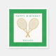 Célébrez le joueur de tennis ou le fan de tennis dans votre vie avec ces serviettes personnalisées de fête avec des raquettes de tennis en or. Le texte est personnalisable. Une partie d'une collection de Parcel Studios. *Note : L'or de ce produit est simulé. Aucune feuille d'or ne sera utilisée dans la fabrication de ce produit.