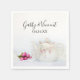 L'élégante Teapot and Pink Roses Papier Mariage Napkins peut être personnalisée avec les noms de la mariée et du marié et date à utiliser à votre joli jardin thé fête nuptiale douche ou mariage cocktail et réception. Ces serviettes à thé jetables personnalisées et élégantes sont dotées d'une photo florale d'une théière fleurie avec des roses roses et du satin blanc.