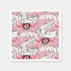 This complex and whimsical repeating pattern captures the joyous, heartwarming celebration of the Whos of Whoville after their Christmas is saved! The design features long, curved dining tables set with tall, whimsical candlesticks, towering piles of food, and elaborate tureens. The tiny Whos are seated and serving, dressed in their holiday best, celebrating beneath a festive green wreath proclaiming "MERRY MERRY." Set against a playful pink background, this detailed print is bursting with the classic charm and chaotic energy of a genuine Dr. Seuss Christmas!