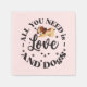 Serviettes à thème "Love and Dogs". Texte blanc, Message d'amour, Amoureux de les chiens. Une serviette à thème "Amour et Chiens" avec un graphique circulaire blanc avec l'expression "TOUT CE DONT VOUS AVEZ BESOIN EST AMOUR ET CHIENS", accentuée par les coeurs et les empreintes de pattes. Cette serviette à thème "Love and Dogs" séduit les amateurs de chiens et fait de l'amour un sentiment essentiel.
