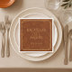 Ajoutez une touche de style raffiné à votre célébration avec cette serviette de fête de bachelor en rouille et or. Dotée d'un design élégant avec une typographie dorée et des illustrations botaniques subtiles de feuilles de tabac et d'éléments de safran, c'est le détail parfait pour une soirée de garçon classe.