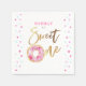 serviettes de fête d'anniversaire sur le thème du beignet mignonette illustrant l'illustration d'un beigne rose avec le texte qui dit "doux" en texte métallique faux or. Parfait pour une fête d'anniversaire de 1er anniversaire.