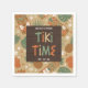 Les serviettes à cocktails à thème Tiki sont ornées d'une enseigne en bois rustique au centre avec typographie "Tiki Time" et votre nom et date de l'événement avec une bordure de masques Tiki, ananas, fleurs d'hibiscus et feuilles de palmiers et de monstères. Parfait pour les fêtes tropicales, les îles, les luau et la plage comme fête d'anniversaire, mariage, douche et anniversaire.