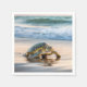Serviette En Papier Tortue Marchant Sur Le Sable De Plage Humide