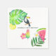 Des serviettes en papier de fête d'été exotiques, avec feuillage et fleurs tropicales, fruits frais, un popsicle et un oiseau toucan.