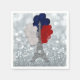 Serviette En Papier Tour Eiffel Pailletée Argent Fête Rouge Blanc Bleu