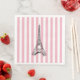 Profitez de nos serviettes en papier d'illustration de la Tour Eiffel à rayures roses et blanches.